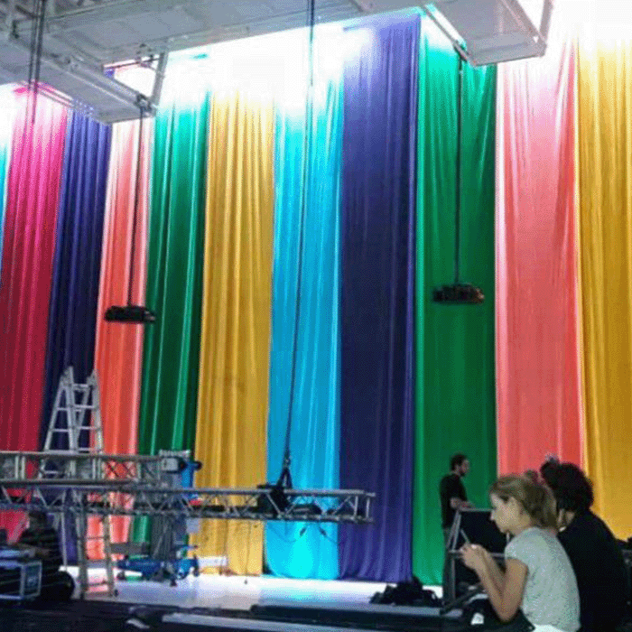 Contamos con distintos géneros entre los que podrás elegir con la tranquilidad de saber que todos ellos cuentan con certificación de ignifugado – un tratamiento retardante de llamas – exigida para eventos de primer nivel.
